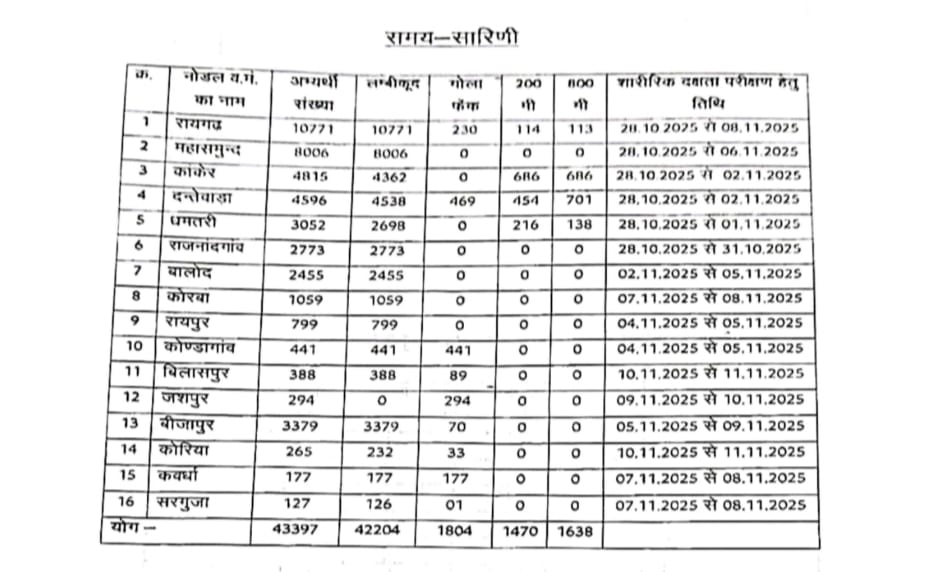 नोट:- 28 अक्टूबर 2025 से फिजिकल परीक्षा प्रारम्भ होगी
