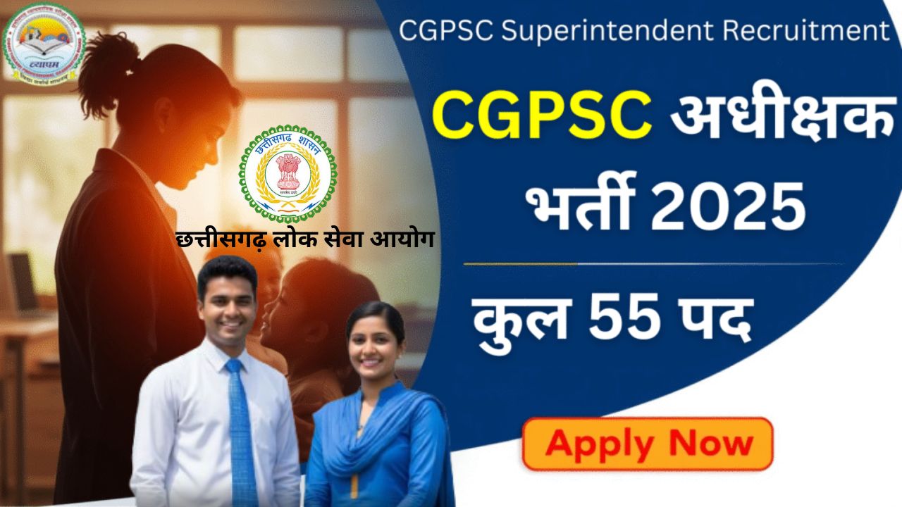 CGPSC Superintendent Recruitment: छत्तीसगढ़ में सरकारी नौकरी का सपना देख रहे युवाओं के लिए एक शानदार अवसर आया है। छत्तीसगढ़ लोक सेवा आयोग (CGPSC) ने महिला एवं बाल विकास विभाग के तहत अधीक्षक (बाल देखरेख संस्था)के 55 रिक्त पदों पर सीधी भर्ती के लिए आधिकारिक अधिसूचना जारी की है। इच्छुक और योग्य उम्मीदवार इन पदों के लिए ऑनलाइन आवेदन कर सकते हैं। आवेदन करने से पहले, भर्ती से जुड़ी सभी महत्वपूर्ण जानकारी जैसे पात्रता, आयु सीमा, और चयन प्रक्रिया को ध्यान से पढ़ें ।