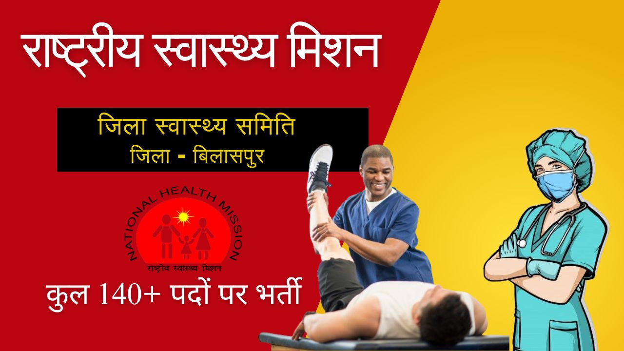 राष्ट्रीय स्वास्थ्य मिशन अंतर्गत जिले के स्वीकृत आर.ओ.पी. वर्ष 2025-26 में स्वीकृति के अनुसार राष्ट्रीय स्वास्थ्य मिशन/जिला स्वास्थ्य समिति जिला बिलासपुर कुल 140+ पदों पर भर्ती